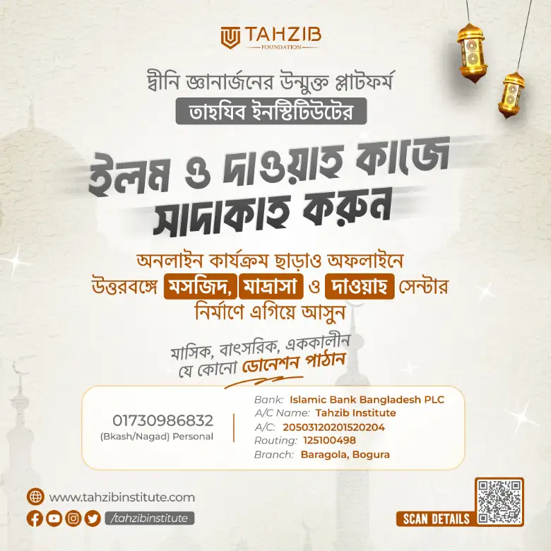 - তাহযিবের অন্য যে কোনো কোর্সে দাওয়াতী উদ্দেশ্যে অন্যকে যুক্ত করুন ও শেয়ার করুন।